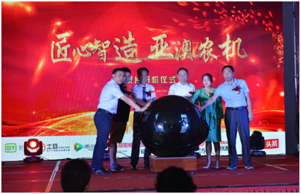 7月11日上午,CCTV發現之旅《匠心智造》欄目亞澳農機開機儀式隆重舉行。匠心欄目組監制李會晴、導演張軍賢、中國農業機械化協會劉憲會長、中國農機工業協會劉偉華副秘書長、農業部農機推廣總站劉司法處長、中國農機流通協會馬錚處長、中國農機安全報社王建鵬副社長、陜西省農業機械化管理局上官永副局長、甘肅省農業機械質量管理總站張恩貴站長、山西省農機推廣站張玉峰站長、陜西省農業機械鑒定站王延宏站長、陜西省農業機械研究所賀功民所長、戶縣人民政府毛安副縣長、西安灃京工業園黨工委楊波書記、西安亞澳農機股份有限公司董事長史可器、總經理史森強及各地經銷商、給供應商等300余人參加開機儀式.